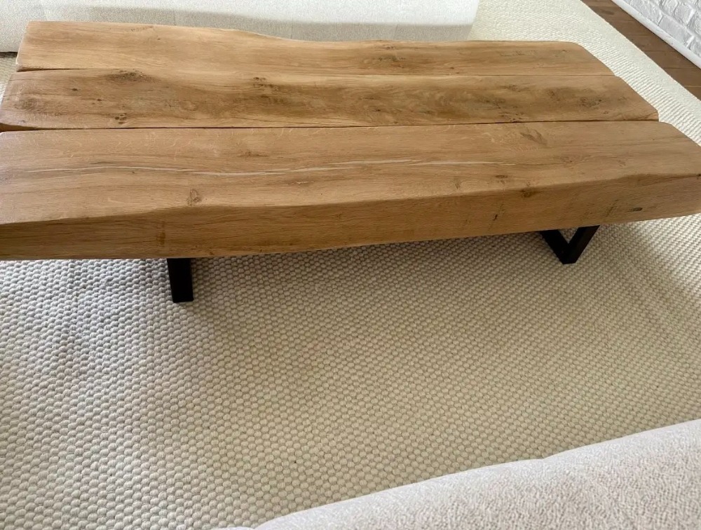 Cette belle table basse en poutres de chêne est la table idéale pour un salon design et contemporain. Il s’agit d’une composition de poutres de chêne, associées à des pieds métalliques pour un rendu tendance.