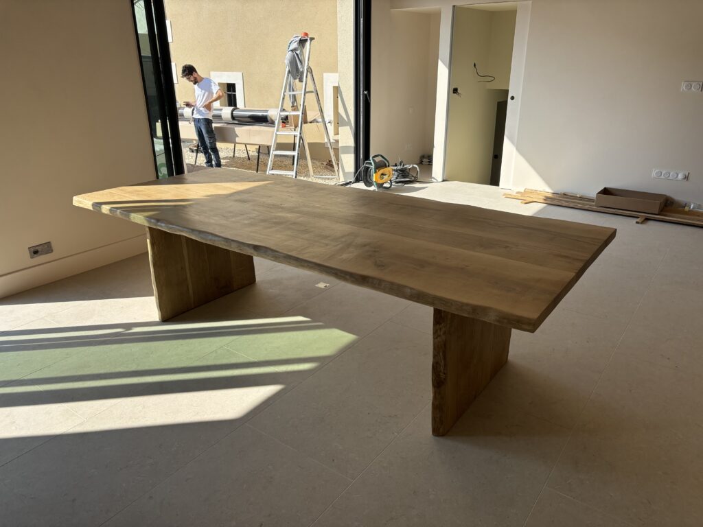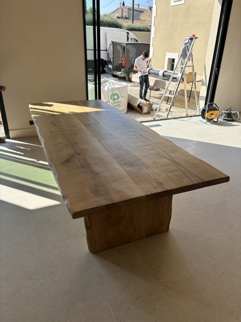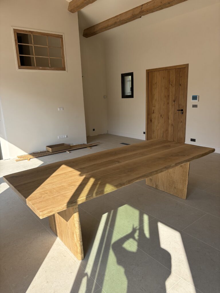 Grande table plateau et pieds en chêne : réalisée à partir d’un plateau massif