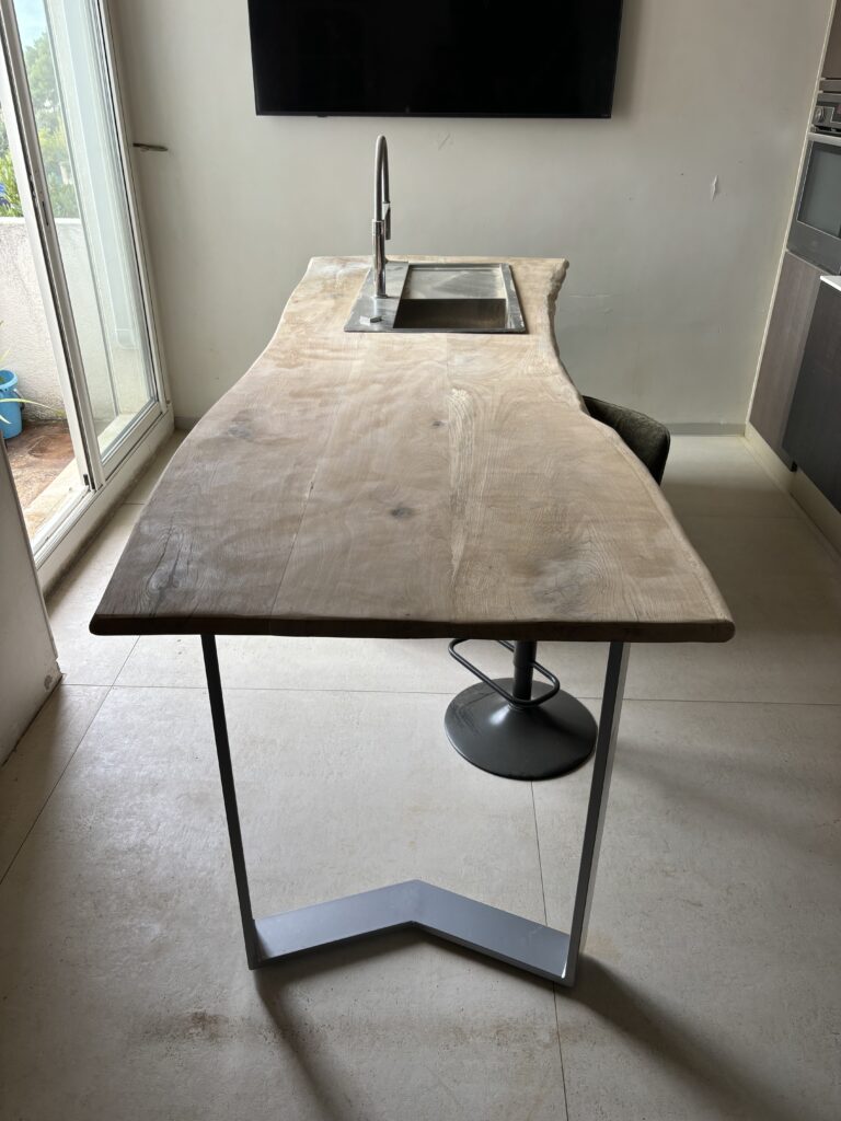Notre expertise en menuiserie artisanale nous permet de réaliser des projets uniques, allant de l’îlot simple au meuble multifonctionnel intégrant rangements, espace repas et électroménager.